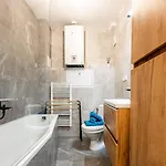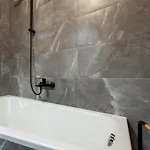 A comfortable stay is provided with amenities such as an iron with ironing board, complemented by a flat-screen TV with satellite channels. This apartment is enhanced by a parquet floor, and furnished with a sofa and a work desk. Beds fitted with hypoallergenic pillows are at guests' disposal. For added convenience, a bath are available at the accommodation. Additionally, you'll find a dryer, toiletries, and towels.